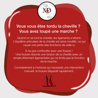 Contrairement à l'entorse qui nécessite une intervention manuelle, la foulure disparaît rapidement.